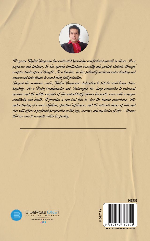 Hundred Lives of a Poet is a deeply reflective collection that intertwines lived wisdom, spiritual awareness, and human emotion. Rahul Gangwani offers a poetic lens into life’s complex spectrum—from joy, longing, and love to silence, fate, and inner peace.
